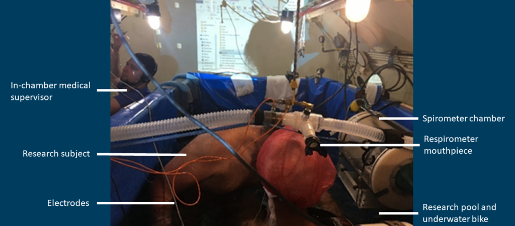 <div id="attachment_7565" style="width: 662px" class="wp-caption alignnone"><img class=" wp-image-7565" src="http://blog.owuscholarship.org/wp-content/uploads/2019/07/chamber_resear... alt="" width="652" height="287" srcset="http://blog.owuscholarship.org/wp-content/uploads/2019/07/chamber_resear... 300w, http://blog.owuscholarship.org/wp-content/uploads/2019/07/chamber_resear... 768w, http://blog.owuscholarship.org/wp-content/uploads/2019/07/chamber_resear... 1024w, http://blog.owuscholarship.org/wp-content/uploads/2019/07/chamber_resear... 624w, http://blog.owuscholarship.org/wp-content/uploads/2019/07/chamber_resear... 1259w" sizes="(max-width: 652px) 100vw, 652px" /><p class="wp-caption-text">Looking into the small pool in the research chamber. The research subject is preparing to exercise on a bike sitting under the water. He is connected to various sets of electrodes and a respirometer for monitoring outside the chamber.</p></div>