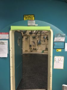 <p>While we were touring the chamber, there was a research project being conducted on oxygen toxicity. We got to peek into the research chamber to see how the research subject was preparing to exercise while breathing compressed gas in the chamber.</p>