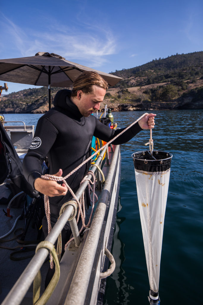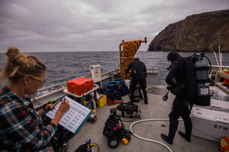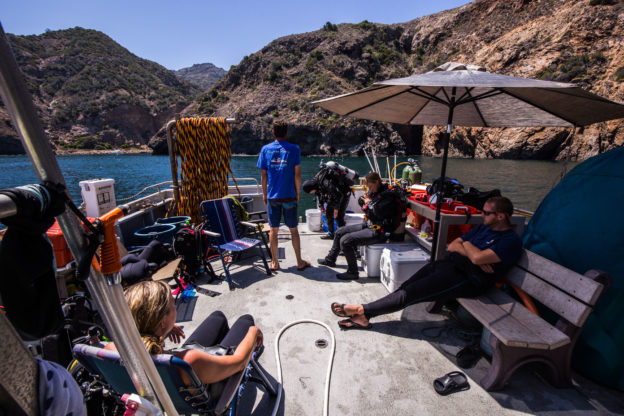 <p>Diving with the Channel Islands crew, it really was work pretty much all day long. With so much data to collect, there isn’t much time for slacking off. Even when all of the diving was over there was still more data to get – a plankton tow to complete, hydrophone recording to make, or a species list to compile. It was inspiring to see them working nonstop to gather all the information needed to thoroughly monitor these special forests.</p>
