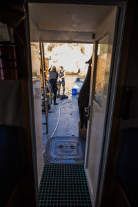 <p>I was to join up with them for one of their week-long trips out on the water. With so many sites to survey and the relative isolation of the islands (the closest being 9 miles offshore, and the furthest 70 miles), this group does their surveying from a live-aboard research vessel – the Sea Ranger II. This 58 ft. vessel is the perfect floating research station, complete with bunks, a galley, scuba compressor, and lots of sampling gear. It has everything you’d need for a week out on the water. Working and diving from this vessel allows the team to get much more work done, staying out on the ocean all week instead of making the trip back to the mainland each evening.</p>