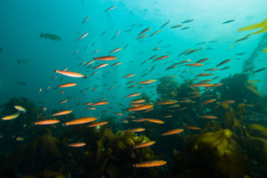 <p>In order to effectively monitor and gather information on the complex environments, the KFM team collects a litany of data to monitor fish, invertebrates, and algae. They employ a wide array of survey types and methods, from quadrats and swaths to count individuals, to size frequency surveys and recruitment modules to learn of recruitment events and size classes, to more specialized types of data collection like plankton tows and collecting acoustic data to answer more specific questions. They utilize special techniques to be more productive underwater, like using a diver attached with surface-supplied air and communication equipment along with a surface-based tender and data recorder to allow for longer dives without the need for the diver to spend any time writing stuff down, or breathing pure oxygen from a hanging bar while on safety stops to be able to do such long and repetitive dives safely. If you can think of a type of data to collect in a kelp forest, there’s a good chance this group is doing it.</p>